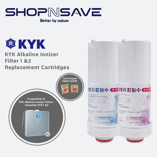 KYK Alkaline Water Ionizer Replacement Cartridges Gold Chipset Filter 1 (6000K) & 2 (9000K)